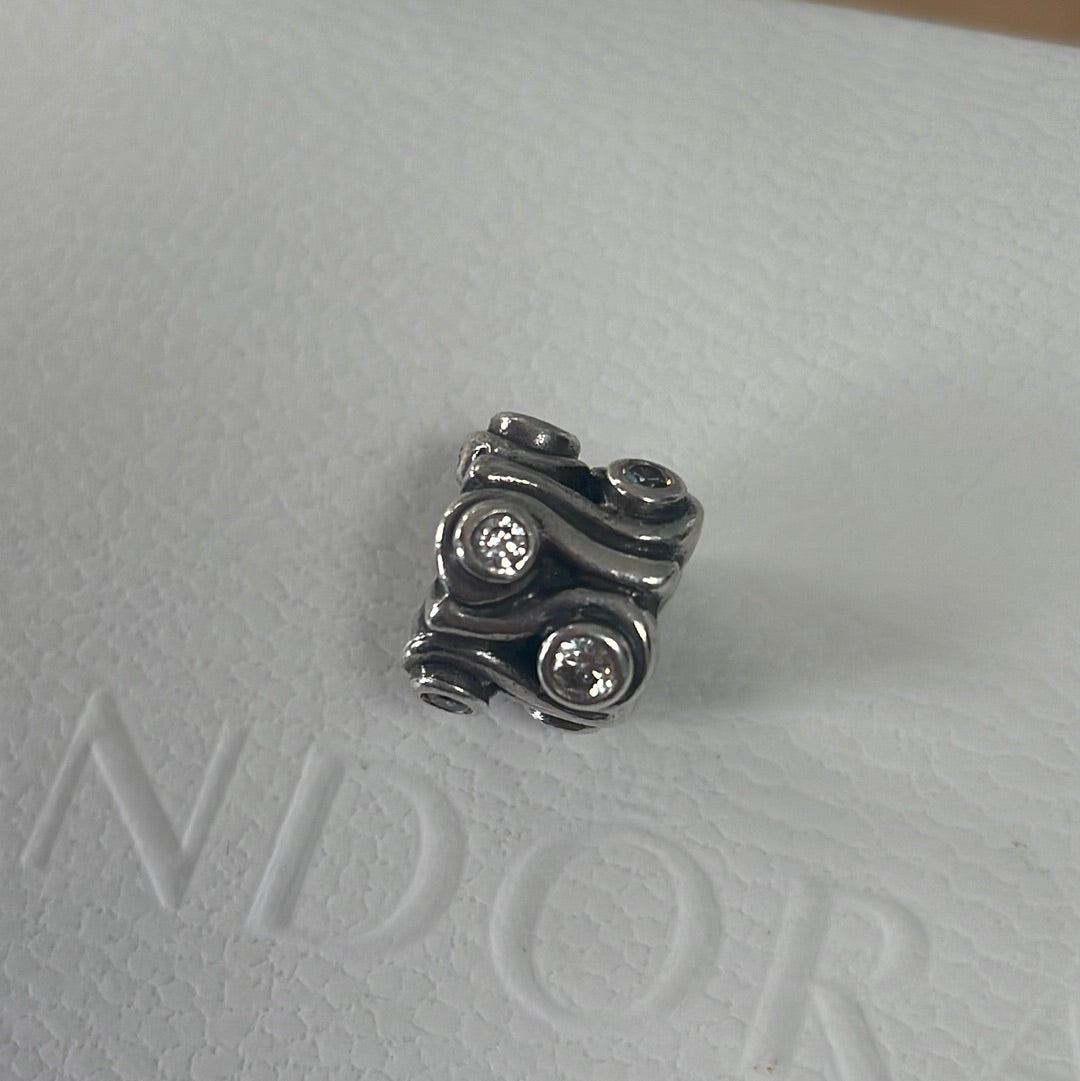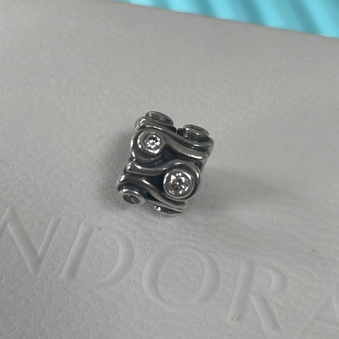 Genuine Pandora Clear Ocean Waves Swirl Bark Abstract Charm
