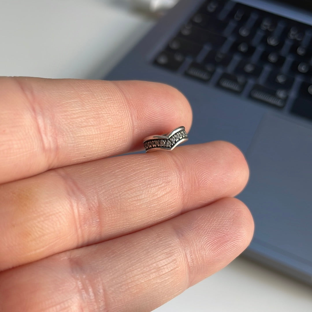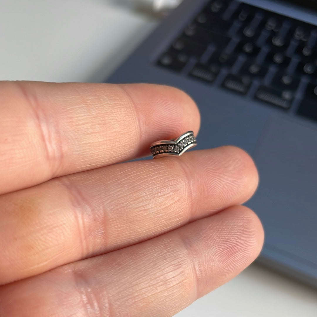 Genuine Pandora Clear Pave Wishbone Spacer Charm x2 / Shine Gold