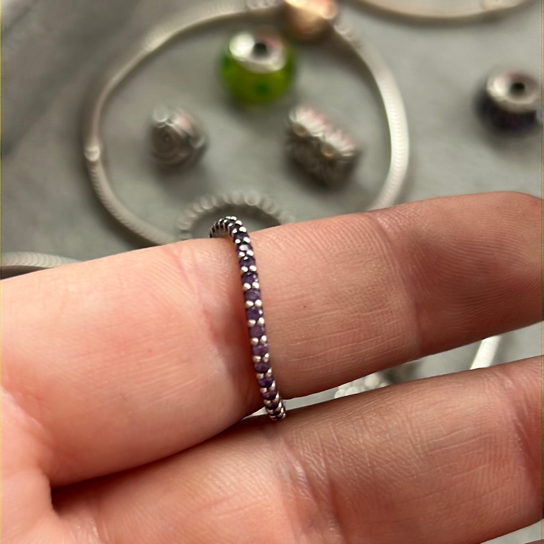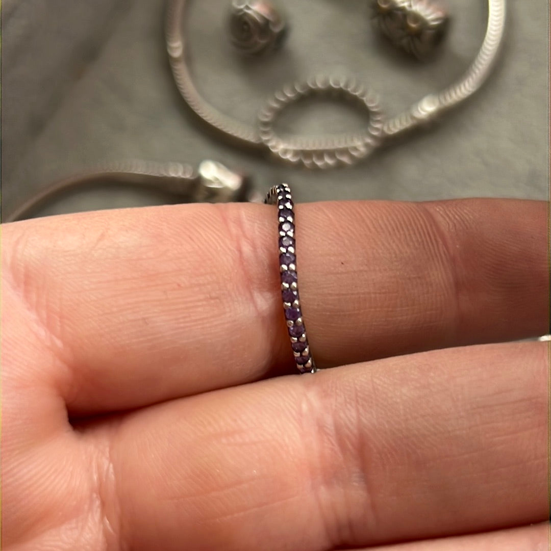 Genuine Purple Pave Wave Sparkle Band Ring Stacker Ring Size 52