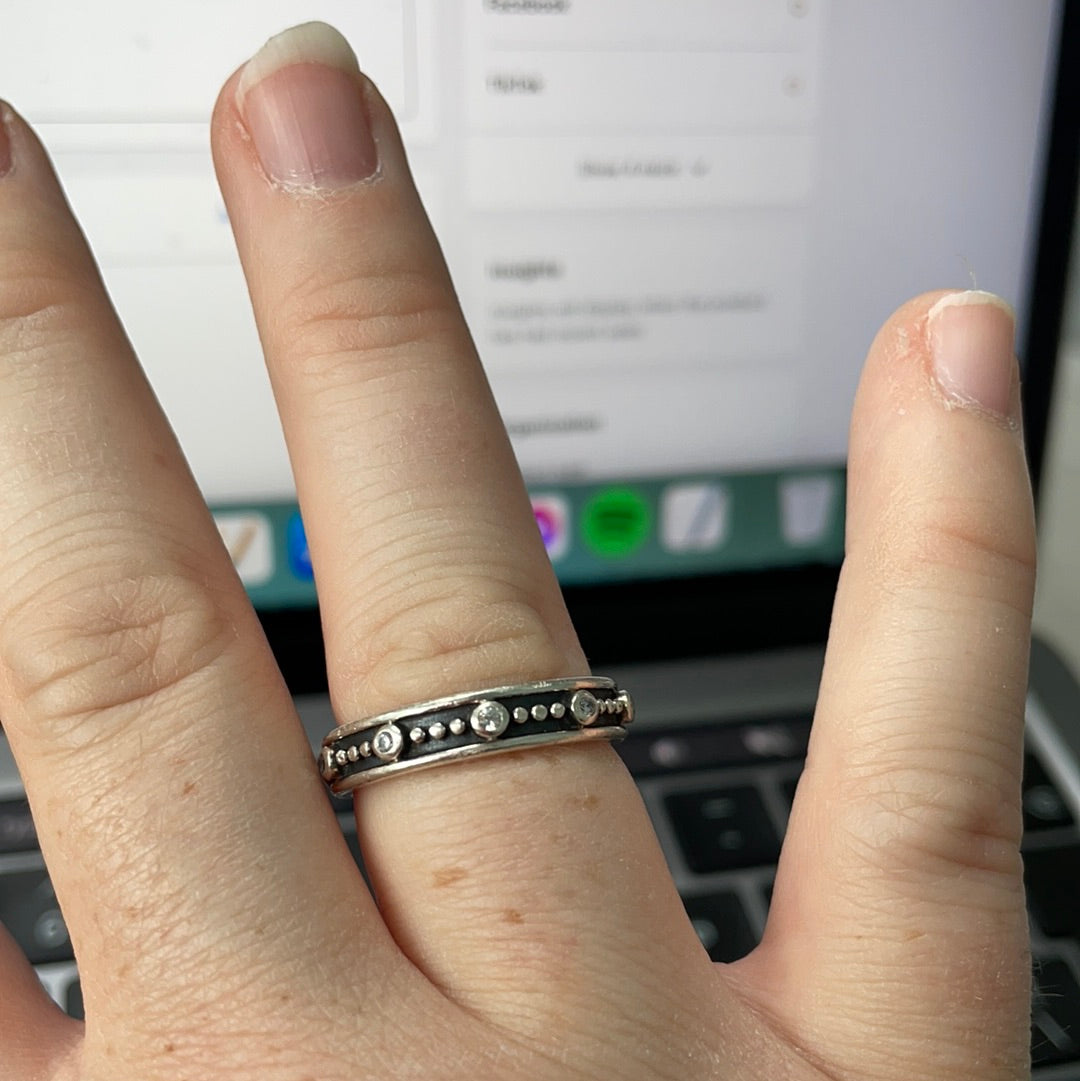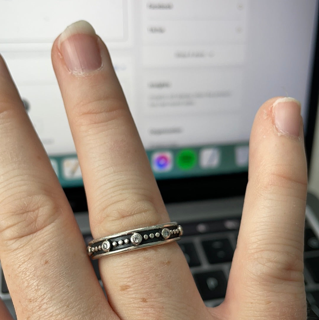 Genuine Pandora Retired Oxidised CZ and Dot Ring Size 54