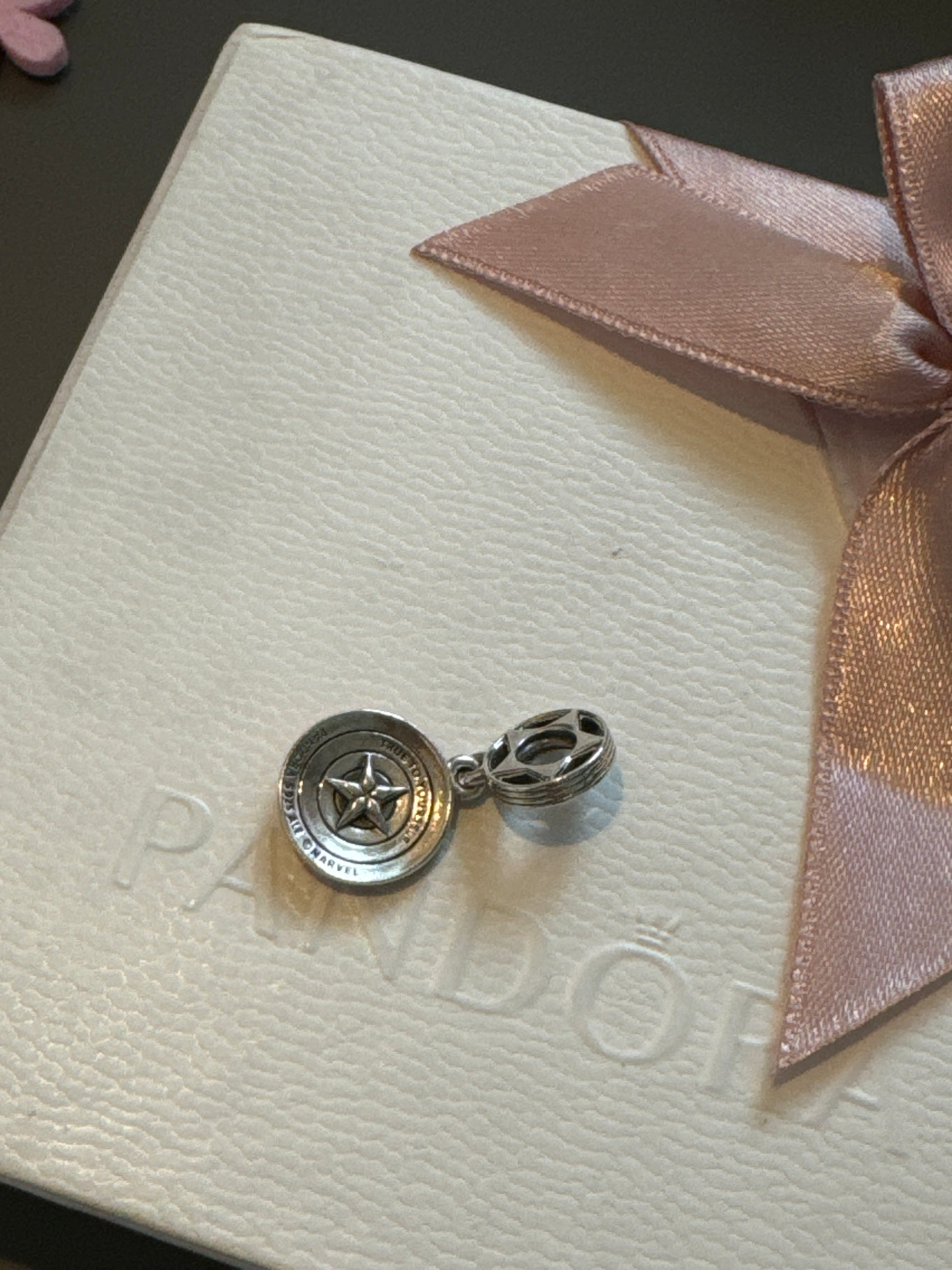 Genuine Pandora Disney Marvel X Captain America Shield Enamel Dangle Charm