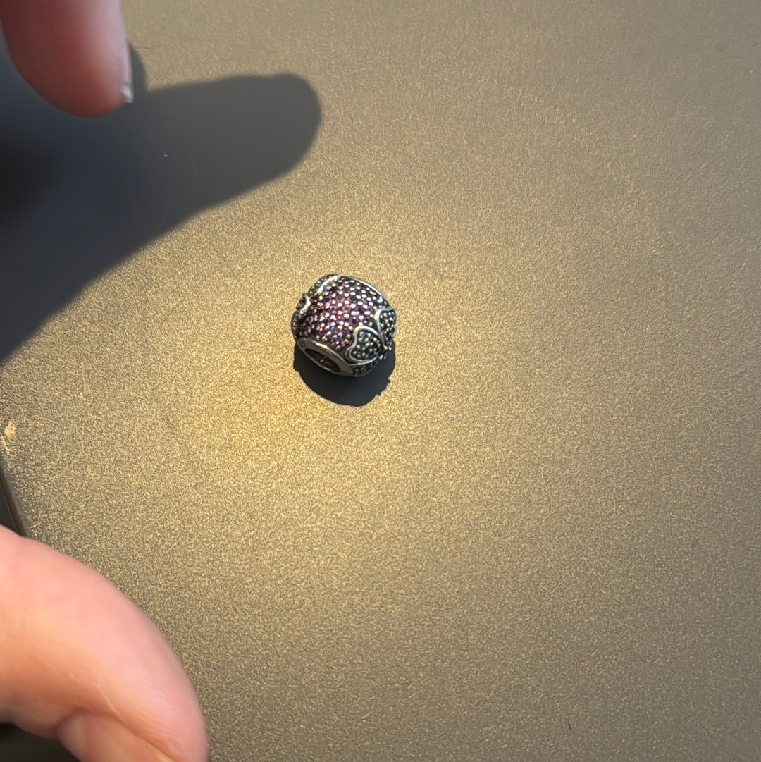 Genuine Pandora Pave Clear and Purple Daisy Flower Ball