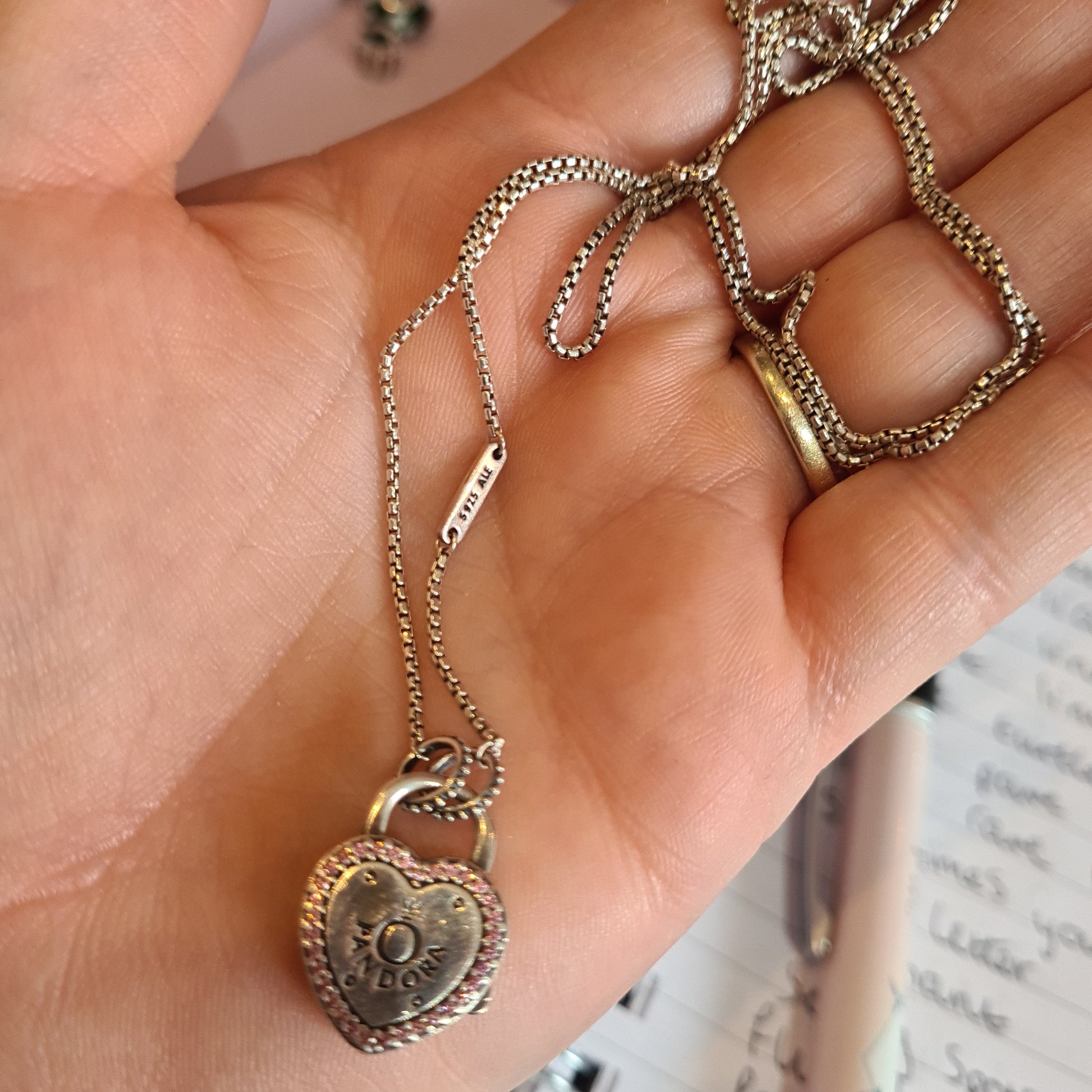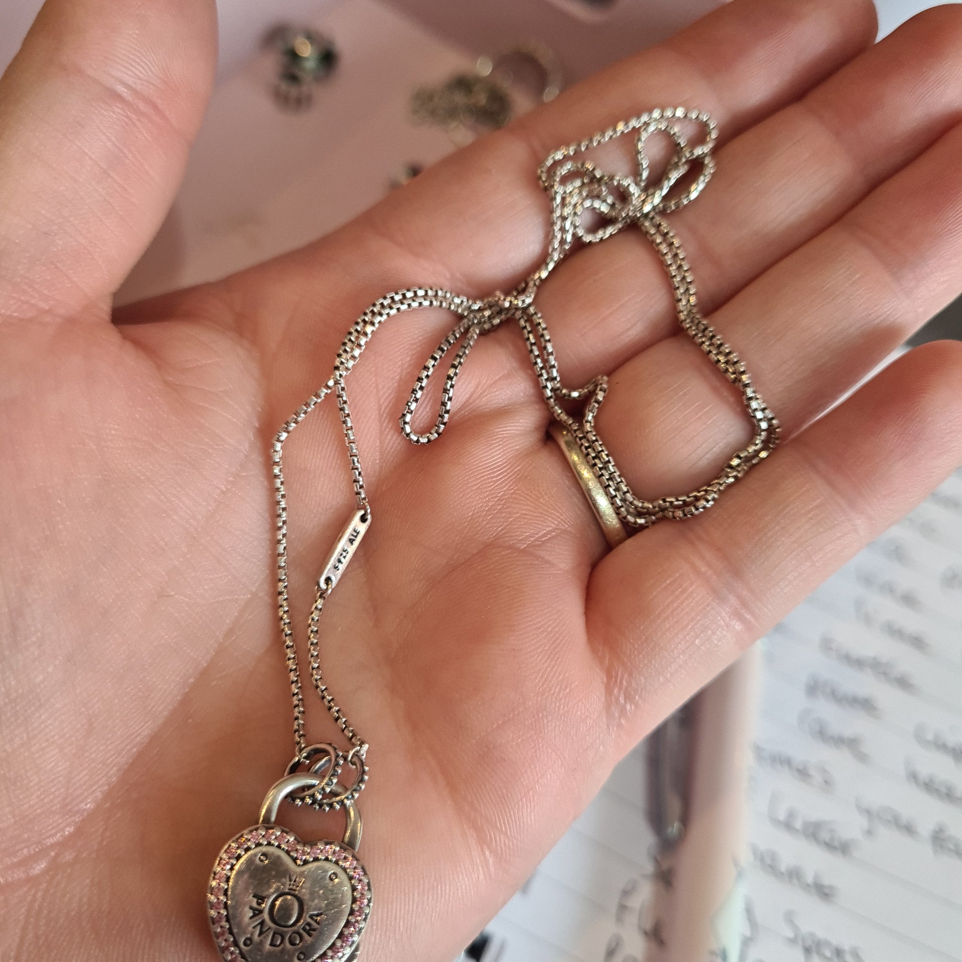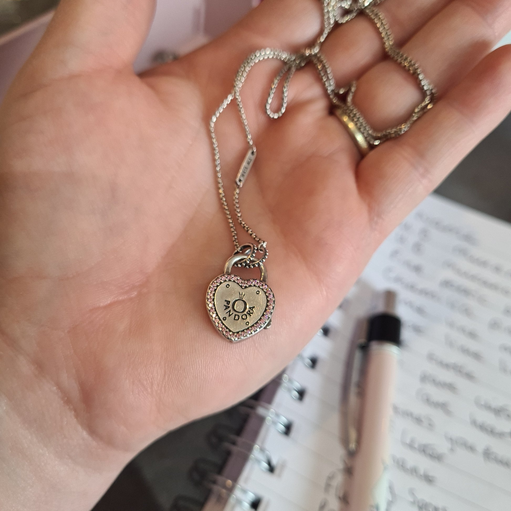 Genuine Pandora Pink Pave Heart Padlock Clasp Necklace 60cm Chain Included