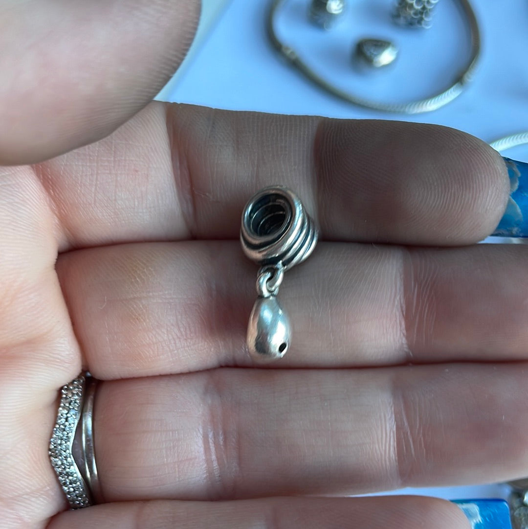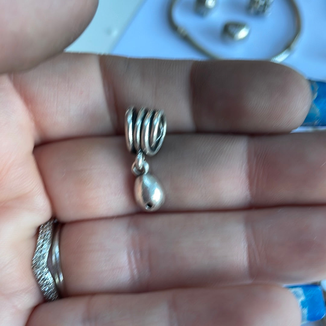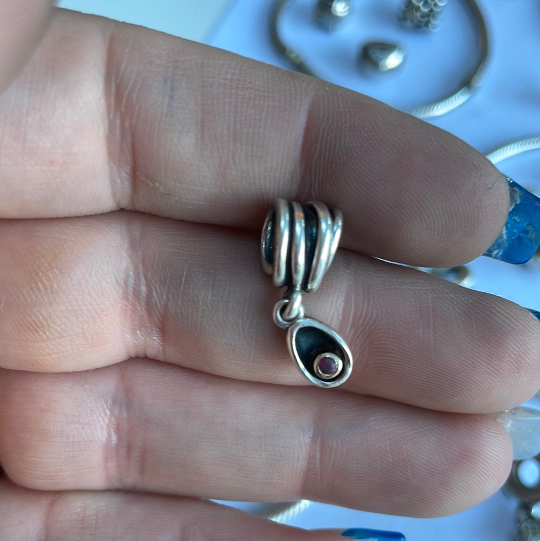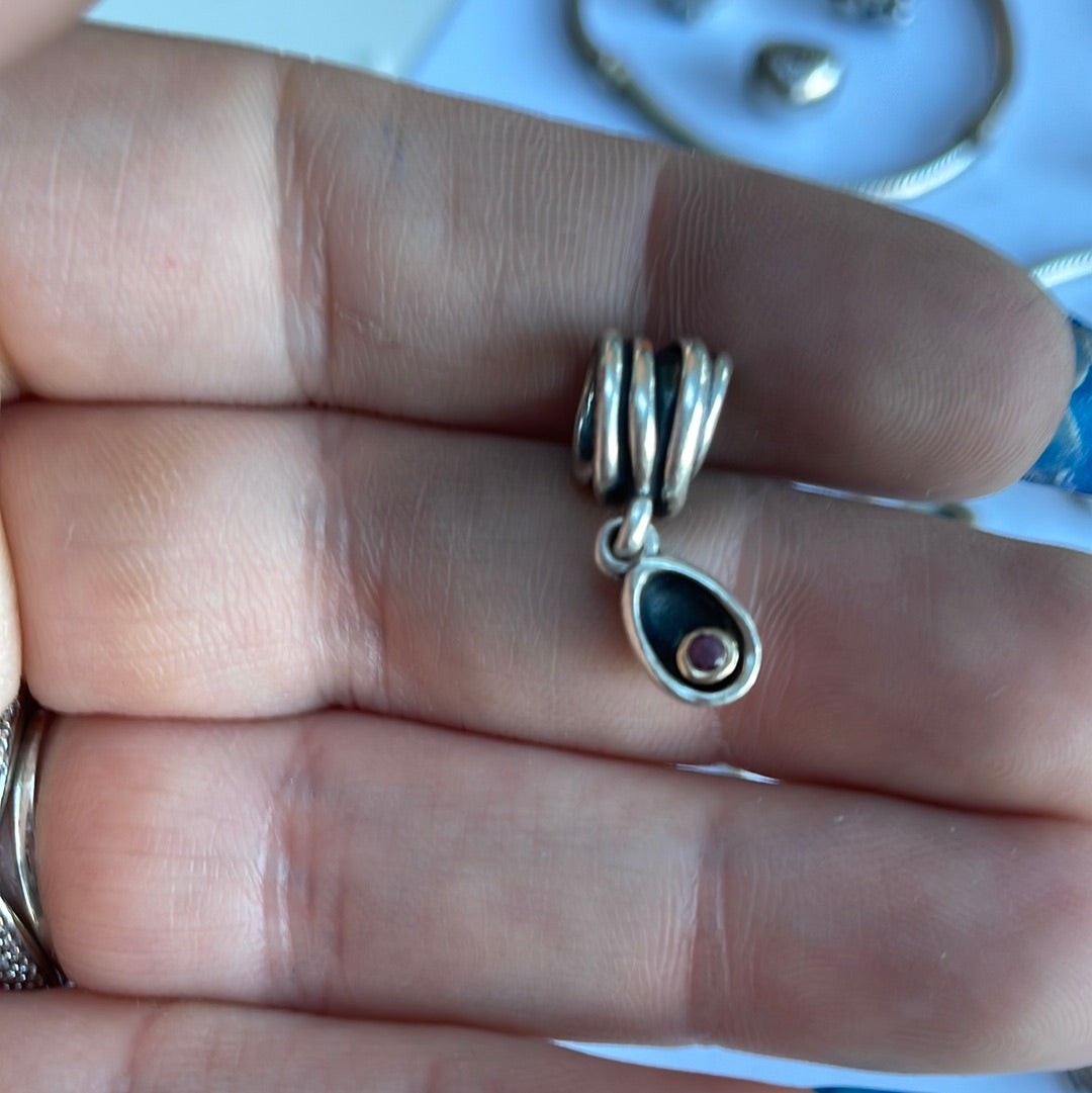 Genuine Pandora Pink Stone Rhodolite Rare Charm Two Tone HTF