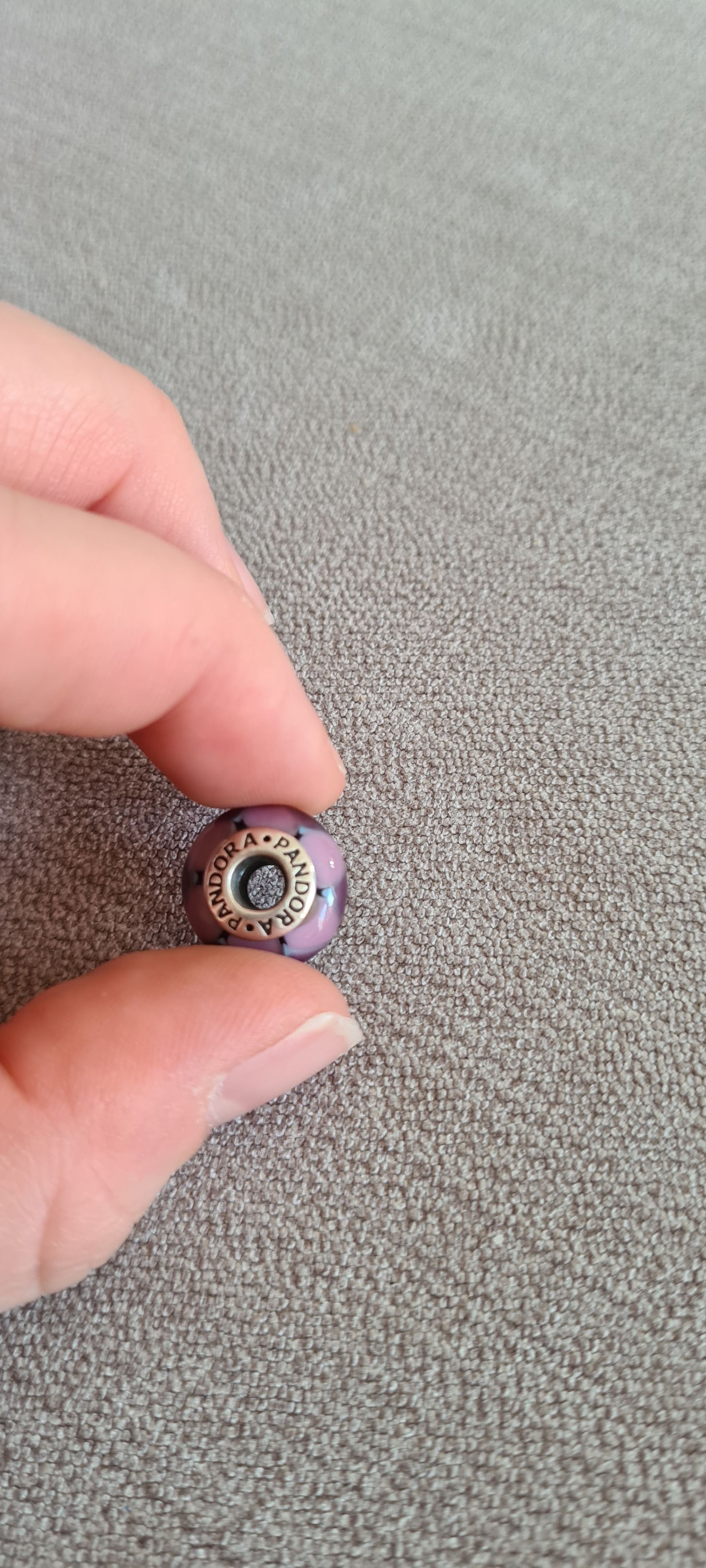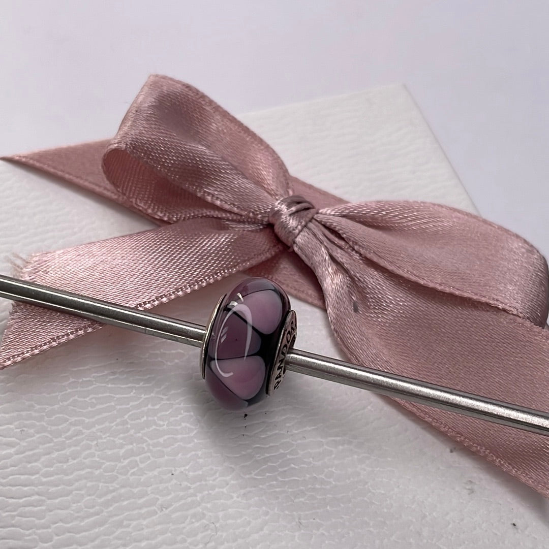 Genuine Pandora Purple Stripe Triangle Murano Glass Charm