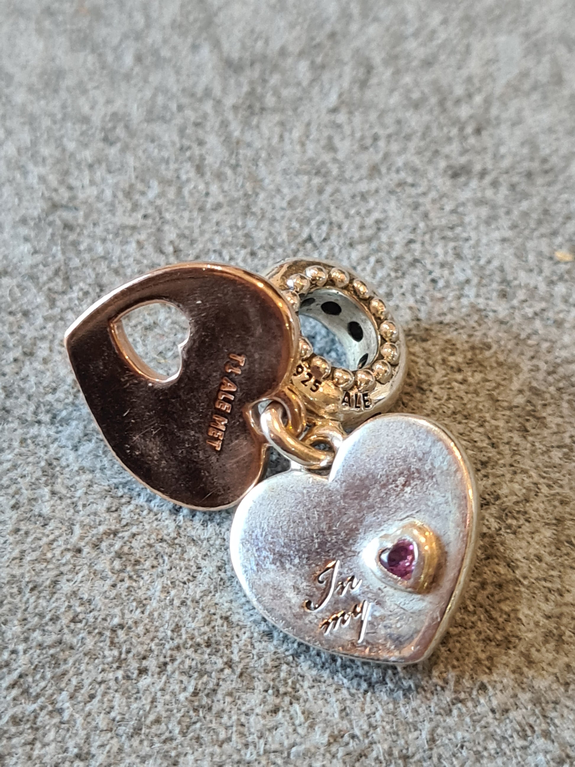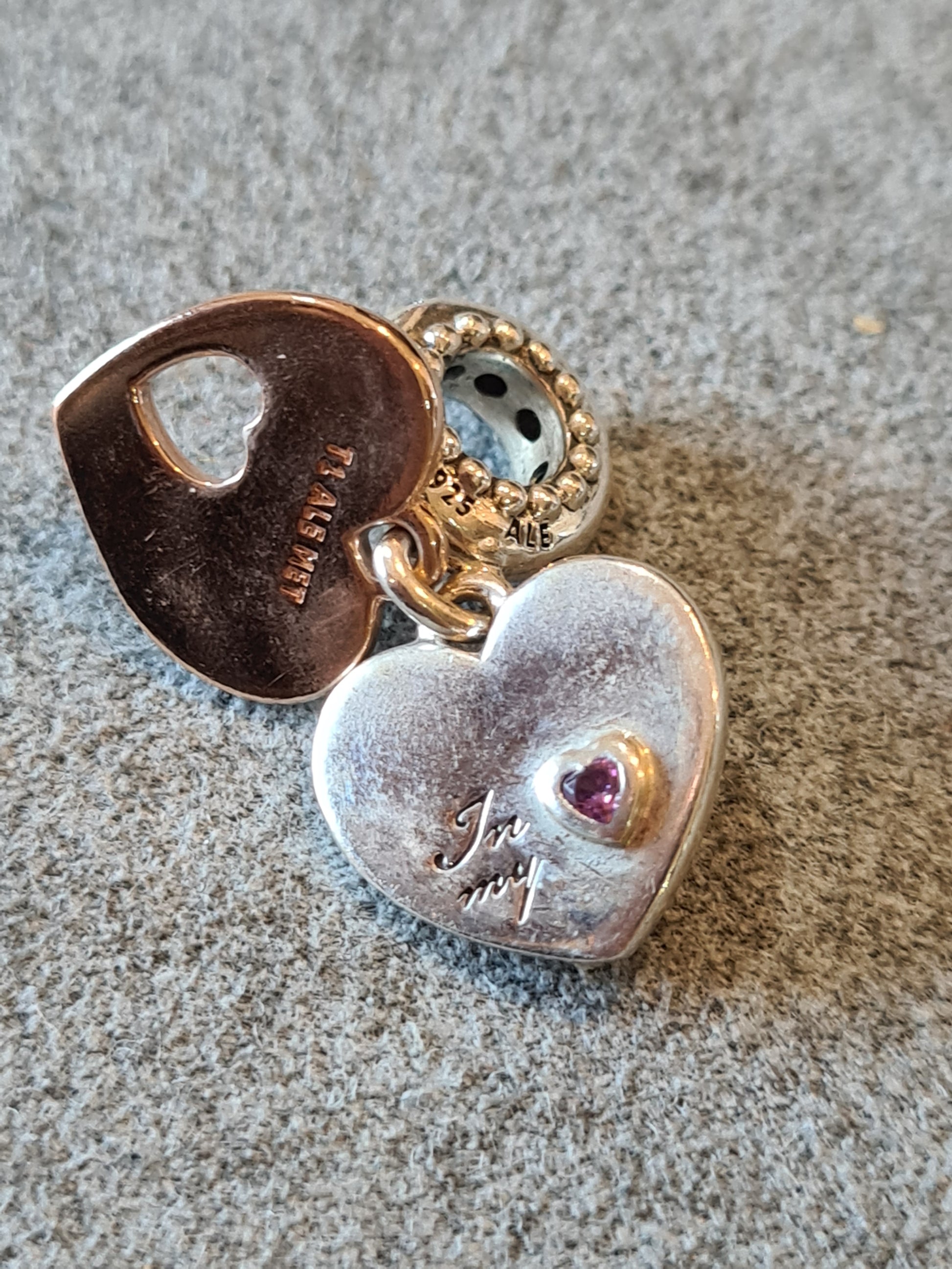 Genuine Pandora Rare Two Heart Rose Gold Dangle "in my heart"